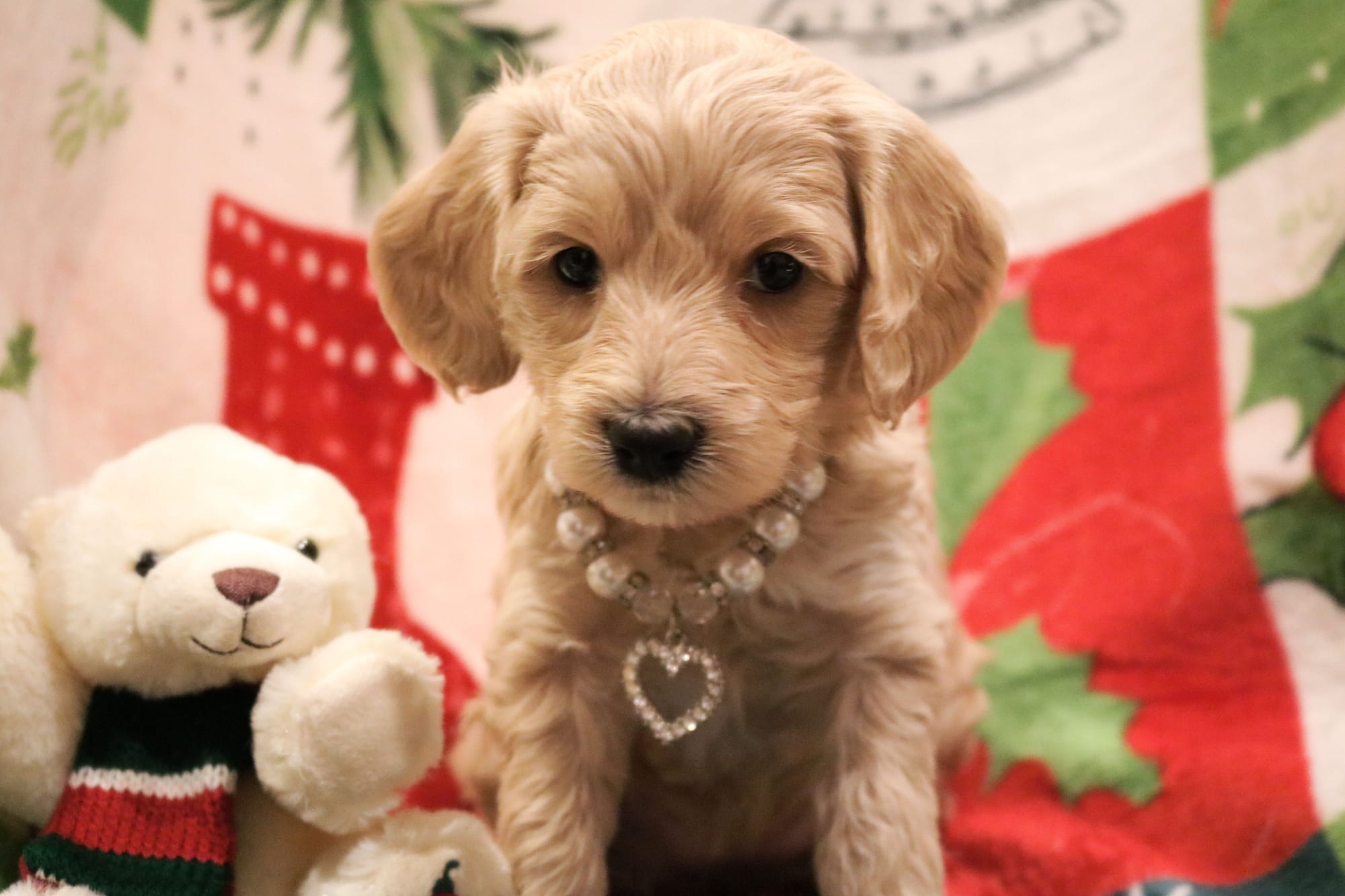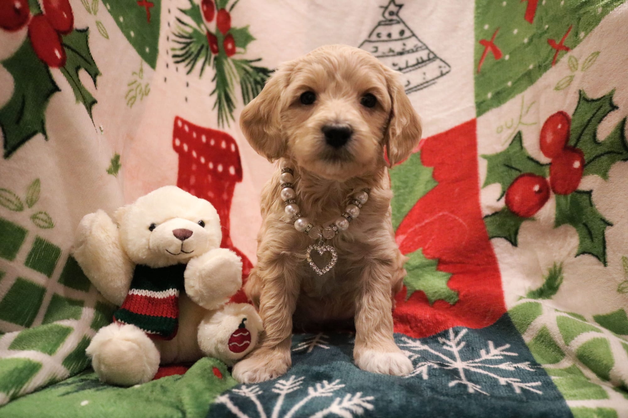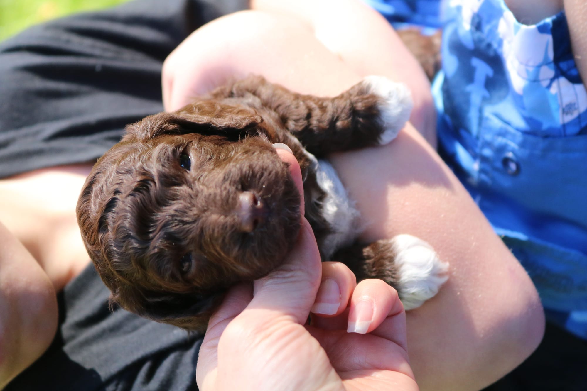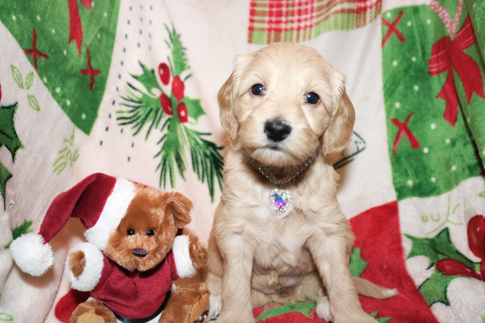 Puppies are introduced to many things such as loud noises, vacuums, multiple toddler toys that make different sounds, music ect.. At a young age it is very important to get doodle puppies used to grooming, bathing, nail clipping, brushing, crate, and pee pad training.