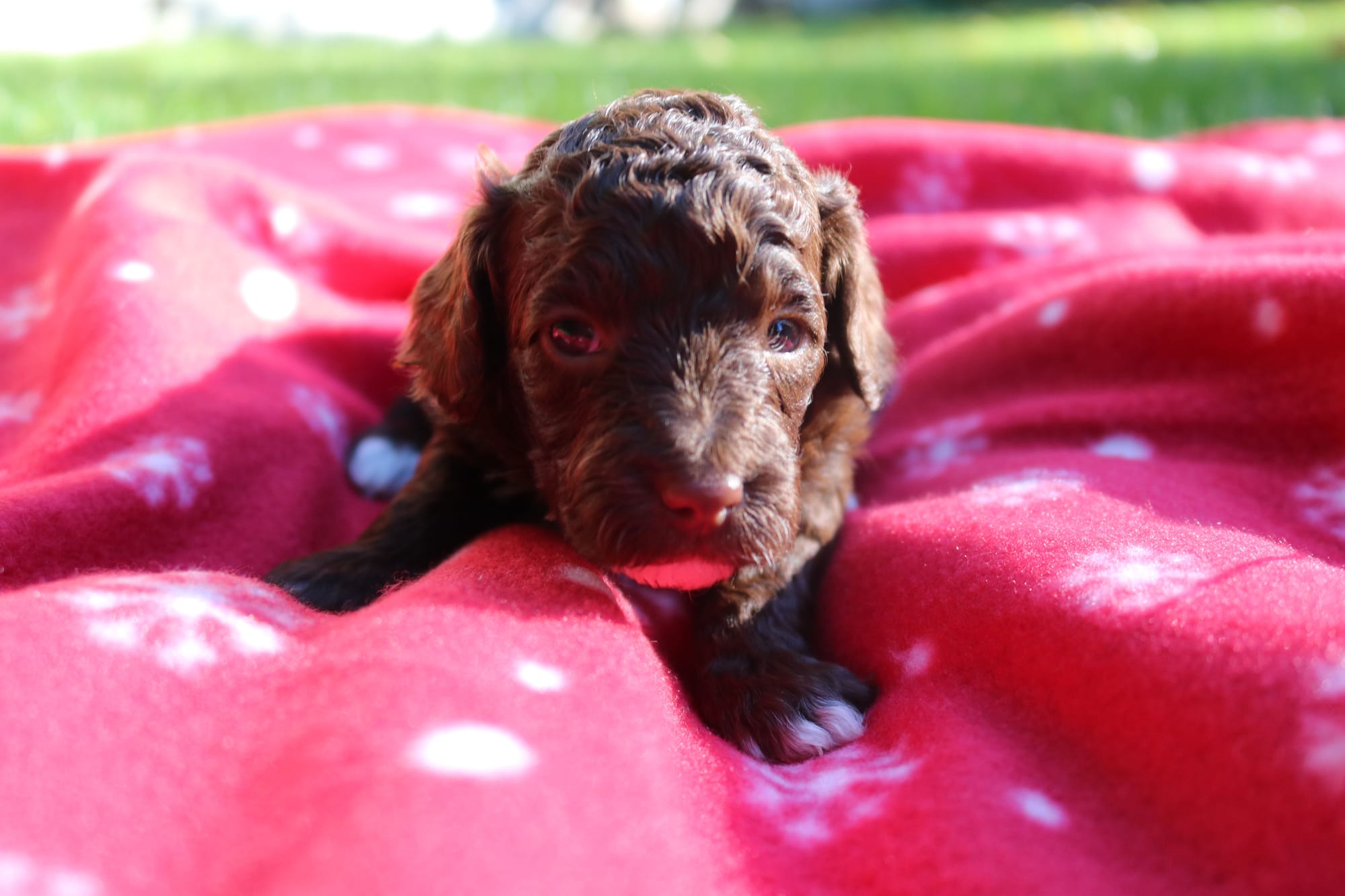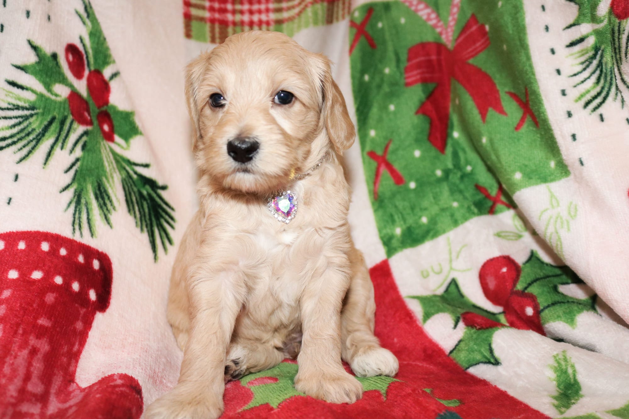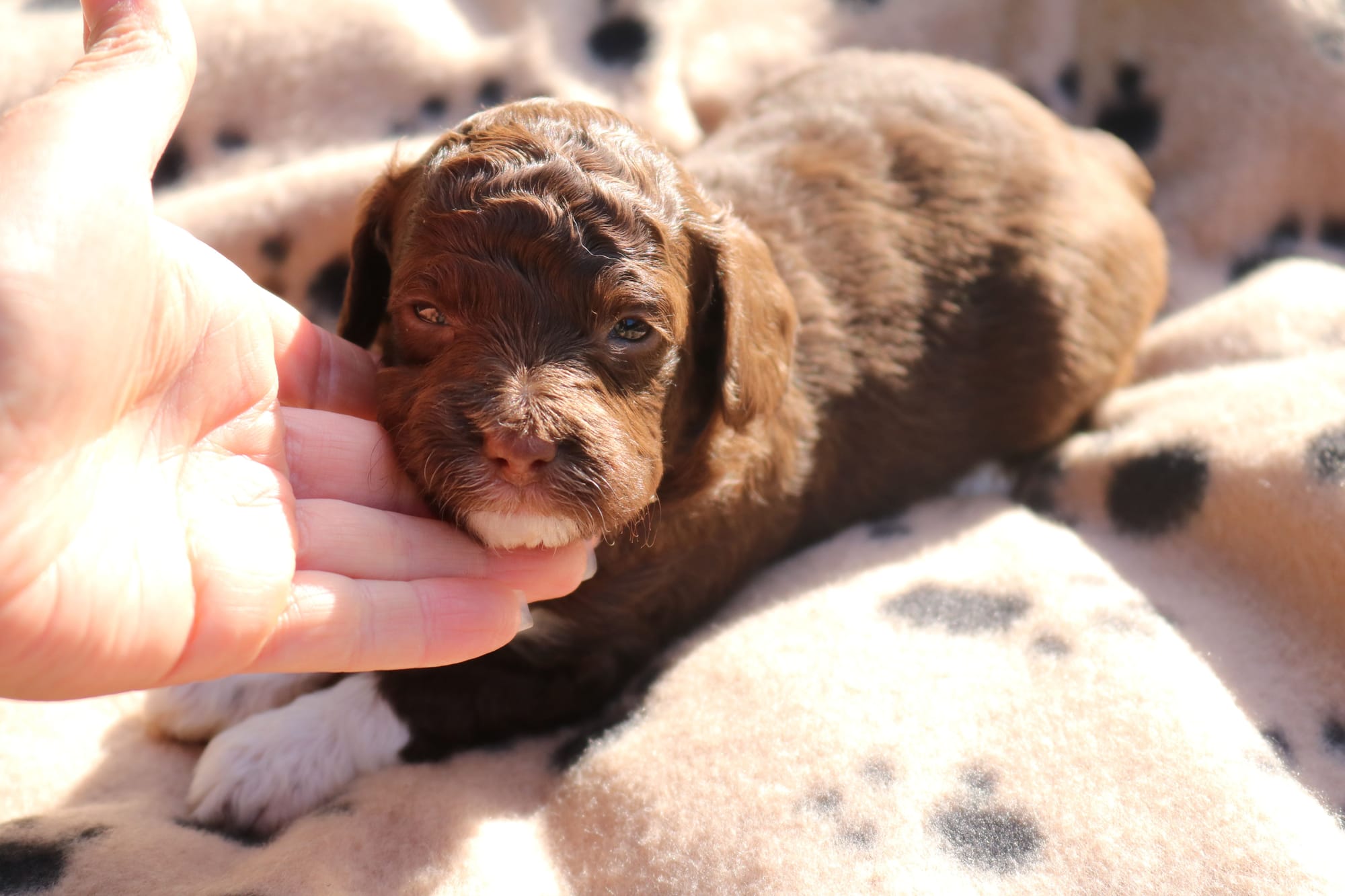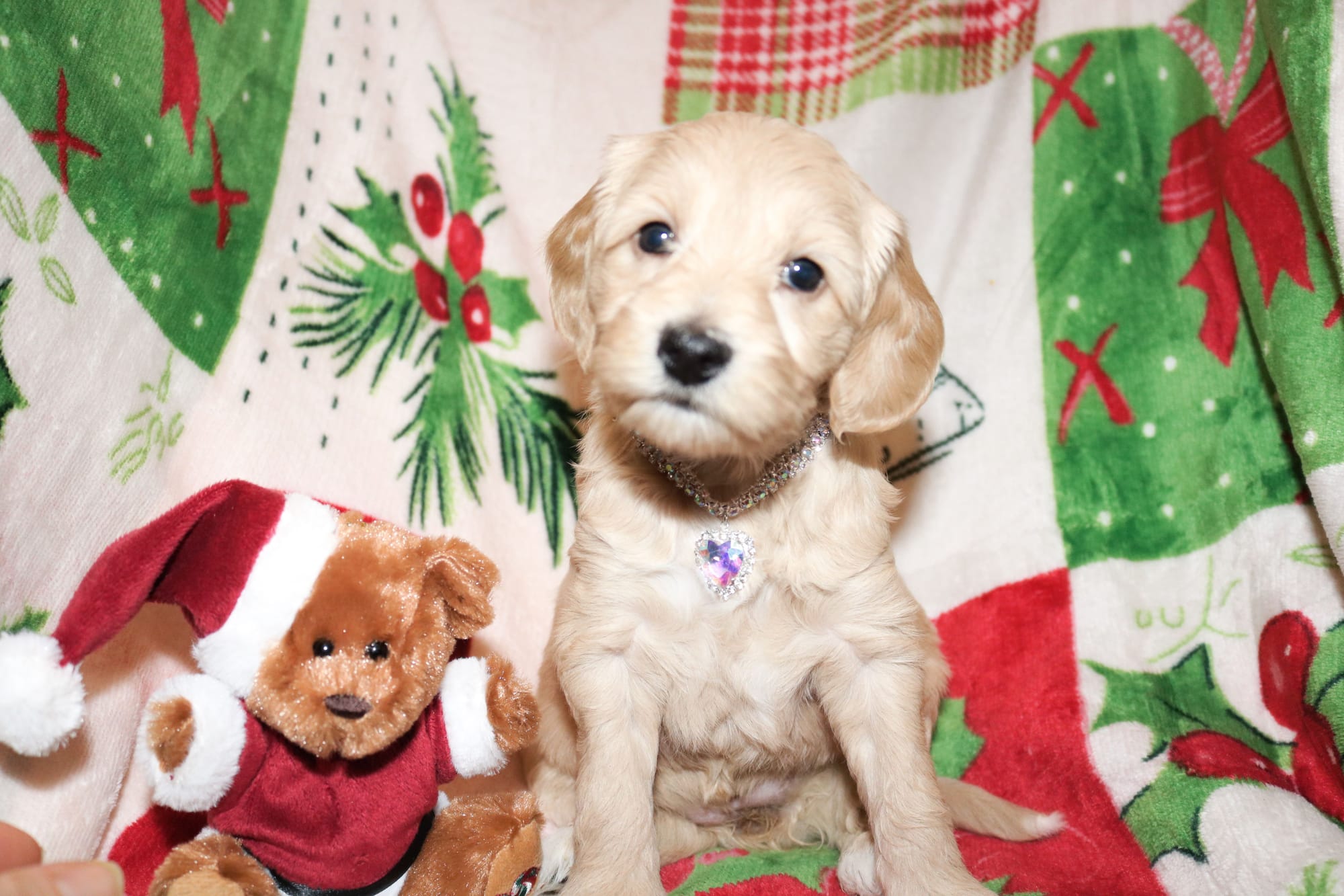 Puppies are introduced to many things such as loud noises, vacuums, multiple toddler toys that make different sounds, music ect.. At a young age it is very important to get doodle puppies used to grooming, bathing, nail clipping, brushing, crate, and pee pad training.